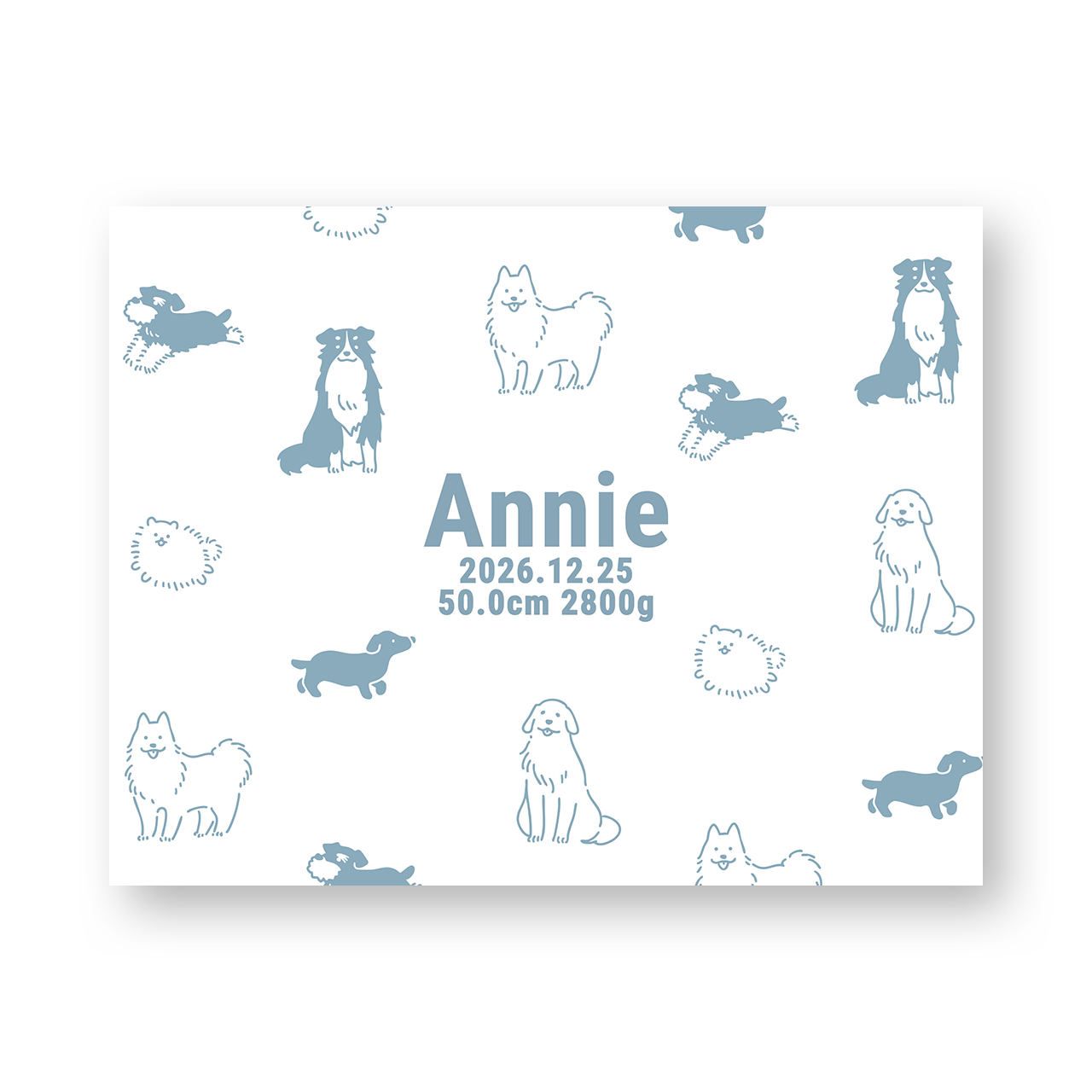 出生体重、出生身長など、その他の文字列をお入れします。「51.3cm 2847g」